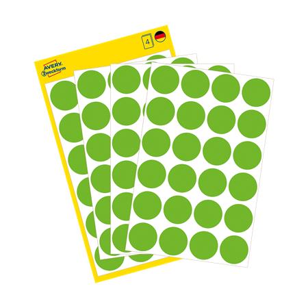 Etikety, okrúhle, priemer: 18 mm, odstrániteľné, AVERY ZWECKFORM, zelené, 96 etikiet/bal