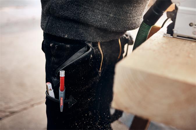 Mechanická tesárska ceruzka v praktickom ochrannom puzdre na rôzne povrchy ako napr na označovanie dreva, kartónu, kameňa alebo betónu.