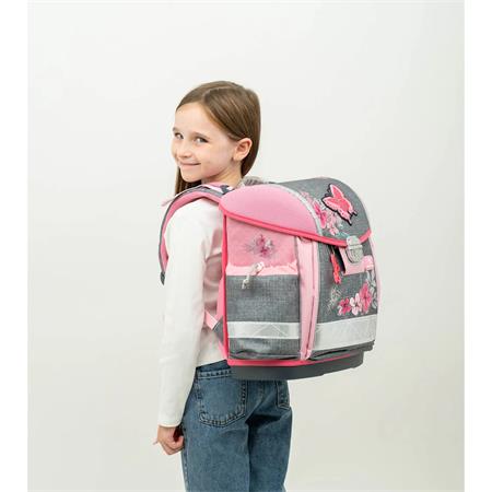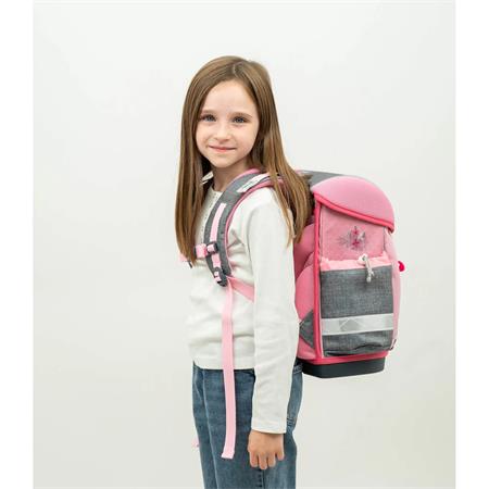 Ergonomický dizajn: -Ergonomicky tvarovaná školská taška s priedušným, polstrovaným chrbtovým systémom, ktorý zabezpečuje maximálne pohodlie a pomáha predchádzať bolestiam chrbta. Ergonomickú vhodnosť potvrdzuje aj certifikát nemeckého inštitútu AGR. Nastaviteľné popruhy: -odnímateľný a nastaviteľný hrudný popruh, nastaviteľné ramenné popruhy pre dokonalé prispôsobenie -stabilné a pohodlné nosenie -polstrované ramenné popruhy v tvare S, prispôsobiteľné postave dieťaťa, zabezpečujú optimálne usadenie a komfort pri nosení.  Premyslený vnútorný priestor: -tri priestranné vnútorné priehradky vhodné aj na zošity a knihy formátu A4, vďaka čomu majú všetky školské potreby svoje miesto – dve bočné vrecká na dáždnik alebo 0,7 l fľašu na vodu. Praktické bočné vrecká:Dve bočné vrecká sú ideálne na uloženie dáždnika alebo 0,7 l fľaše na vodu a umožňujú rýchly a jednoduchý prístup. Jednoducho ovládateľná pracka: -ľahko otvárateľná kovová pracka s reflexným prvkom, ktorý zvyšuje viditeľnosť a bezpečnosť dieťaťa v cestnej premávke.  Superľahká konštrukcia: -hmotnosť tašky je len 930–990 g, takže zbytočne nezaťažuje ramená ani chrbát dieťaťa. Európska výroba: Produkt je navrhnutý a vyrábaný rodinnou firmou v Európe už od roku 1965, čo zaručuje jeho vysokú kvalitu a spoľahlivosť. Ideálna voľba pre rodičov, ktorí kladú dôraz na ergonomickú, bezpečnú a ľahkú školskú tašku pre svoje dieťa.
