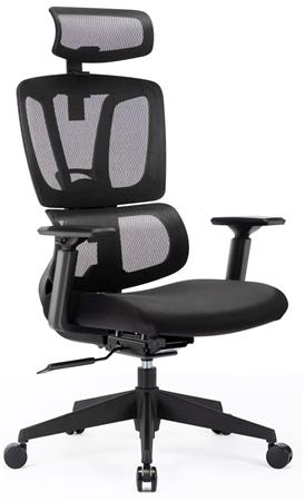 Kancelárska otočná stolička, čierna sieťovaná opierka, čierny látkový sedák, čierny plastový rám a kríž, "Famora"