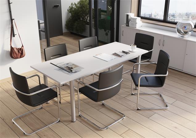 Konferenčný stôl, so sivými kovovými nohami, 80x190 cm, MAYAH "Freedom SV-42", biela