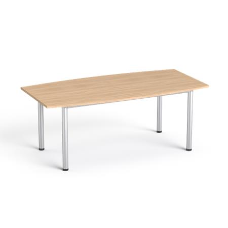 zakrivený konferenčný stolík s kovovými nohami