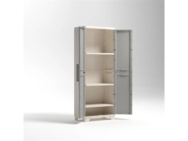 Odolná plastová  skriňa KETER Linear Wood ponúka moderný dizajn a praktické úložné riešenia. Svetlobéžová a žltá farba evokuje prírodné drevo, esteticky sa hodí do každého priestoru.  - jednoduchá montáž a údržba - dvere uzamykateľné visiacim zámkom (nie je súčasťou balenia) - 3 nastaviteľné police s nosnosťou 15 kg/polica - nastaviteľné nôžky - s certifikátom TUV GS -rozmery skrine: 68x39x173 cm (šírka x hĺbka x výška) - rozmery políc: 63x33 cm - celková hmotnosť: 11,08 kg