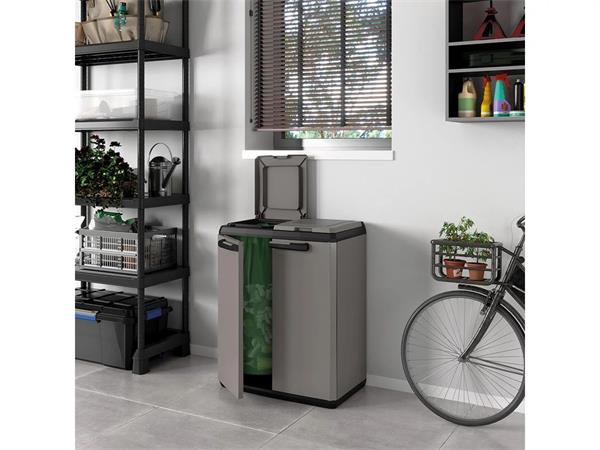 Odpadkový kôš na triedený odpad, plastový, KETER "Split Basic", sivý-čierny