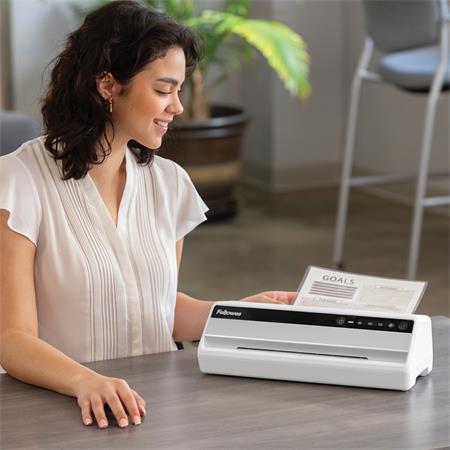 Laminovací stroj do stredne veľkej kancelárie,pre pravidelné používanie. Vhodný na laminovanie za studena, alebo za tepla 80-125 mikr. Technológia „InstaHeat”: zabezpečuje extra rýchle zahrievananie, stroj je pripravený na používanie za 60 sekúnd. Technológia „100% Jam Free”:  pri použití laminovacej fólie Fellowes je laminátor 100% bez zaseknutia, technológia "Auto Shut Off™": energeticky úsporná funkcia, laminovací stroj sa automaticky vypne, keď sa 30 minút nepoužíva. Hmotnosť (kg):2,25 Rozmery (mm):105 x 436 x 139 mm  Šírka dávkovača:235 mm (A4) Počet valcov:2 Doba zahrievania:60 sec  (InstaHeat) Nastavenie teploty:3 stupne, Maximálna hrúbka laminovacej fólie:125 mikr. Rýchlosť laminácie (cm/min):30 Štartovacia sada pre 10 dokumenov